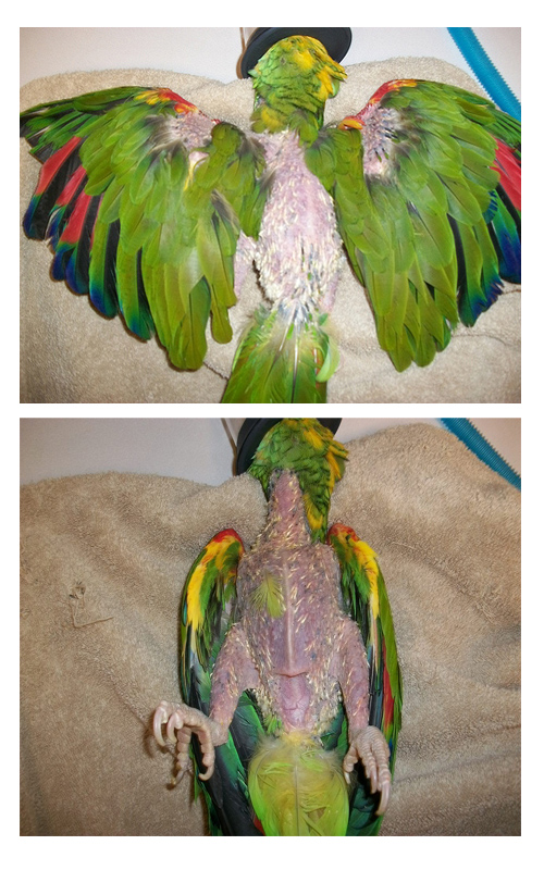 Amazonas: los amazonas son susceptibles a las alergias por polen y también al polvillo de las plumas de las especies australianas. Las manifestaciones tipicas de estas alergias son respiratorios, oculares y dermatológicos.