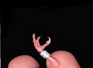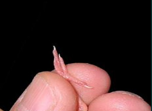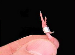 1. cojemos al polluelo boca arriba con la mano izquierda sin apretarlo demasiado. Dejamos libres los dedos índice y pulgar para colocar los tres dedos delanteros de forma ordenada de manera que su dedo corazón quede encima de los otros dos.