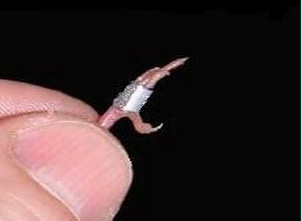 1. introducimos la anilla. En cuanto aparezca la uña del dedo medio por el extremo de la anilla hay que sujetarla y tirar para que aparezcan las tres uñas de los dedos. Sujeta la anilla con la misma mano que sujetas al pájaro para desplazarla.