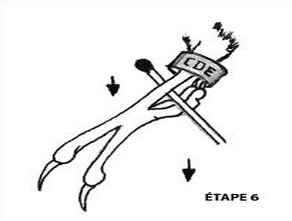 – el dedo trasero no sale; los estrilidos tienen un tarso más corto que otras especies. Eso hace que la anilla llegue a la articulación sin que el dedo de atrás haya salido completamente. En este caso tiraremos de dicho dedo para sacarlo o nos ayudaremos de un bastoncillo si es necesario.