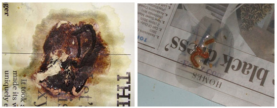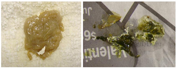 – Negro/oscuras: anorexia o melena (sangre digerida en heces). También puede estar producido por la ingestión de moras u otros frutos oscuros.