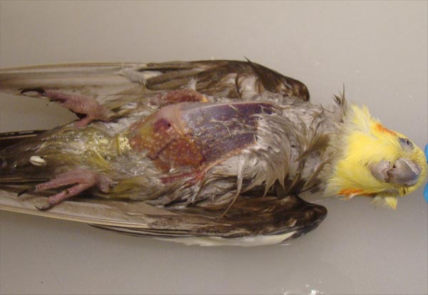 Las aves que reciben inyecciones de vitamina B pueden presentar uratos anaranjados.