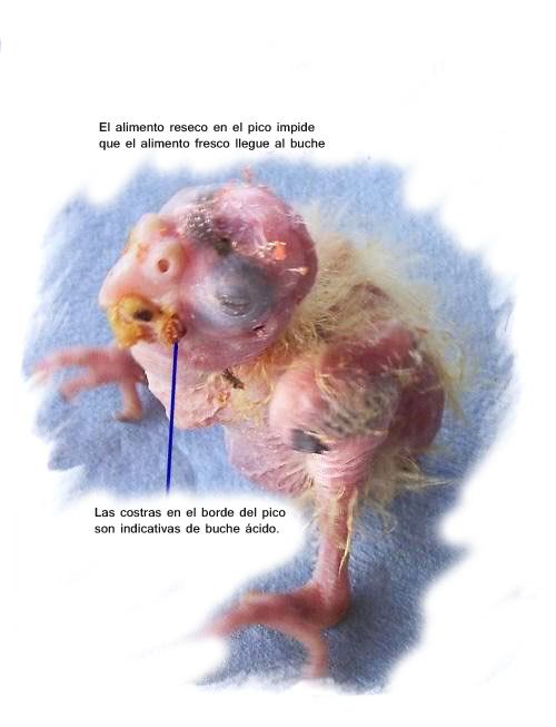 El buche ácido tiene un amplio diferencial, incluyendo estomatisis bacterianas, tricomoniasis, capilariasis y problemas de nutrición.