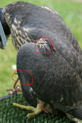 En algunas rapaces como los halcones sacres, los gerifaltes y híbridos de los mismos es frecuente observar un defecto de las alulas en algunas aves que han sido criadas en cautividad. Este defecto que corresponde a una luxación medial de la falange se observa con más facilidad en pollos de 2-4 meses nacidos en incubadora y luego trasladados a mudas cerradas y si no es corregido puede quedar de forma permanente aunque suele ser más un tema estético que funcional. Algunos cetreros afirman que no notan diferencia en el vuelo de un ave con el alula luxada frente una con el alula correcta, mientras otros sí que notan alteraciones en las maniobras de vuelo. Cabe decir que la luxación puede ser unitaleral o bilateral y puede tener diversos grados según el descuelgue. No es un problema exclusivo de halcones sino que también podemos observarlo en buteos, harris y azores.