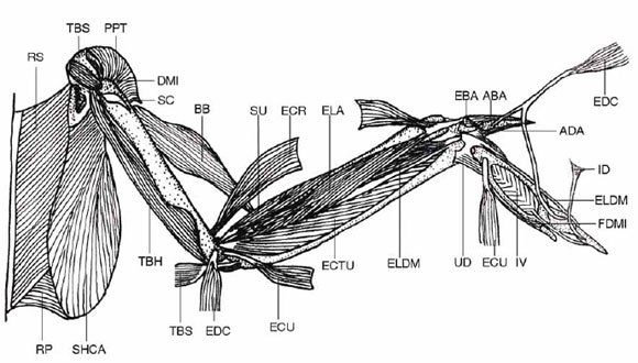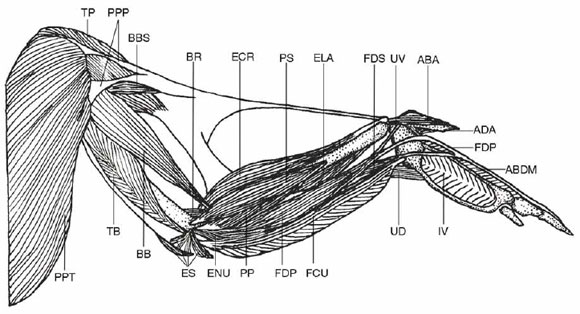En la sutura medial se coloca el ave dorsalmente y se sutura de proximal a distal, al lado de la inserción proximal del musculo interóseo ventral evitando la vena ulnar. No se deben extraer las plumas en esta intervención, deberán apartarse para poder suturar correctamente.
