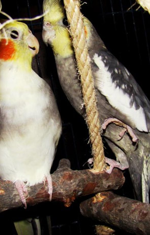 – Perchas adecuadas a su tamaño de pata, preferentemente de madera natural, con irregularidades y de diferentes grosores. Evitar el uso de perchas de plástico, perchas lisas de madera y evitar el sobreuso de perchas limauñas, ya que pueden acabar irritando la zona plantar de la pata del loro, ya que son muy abrasivas.