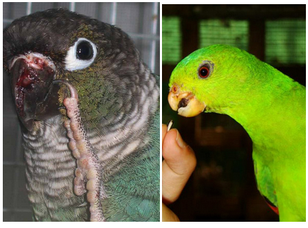Enfermedades infecciosas: muchos virus, bacterias, parásitos y hongos patógenos pueden causar infecciones directamente en el pico o infectar otras partes del cuerpo pero que indirectamente afectarán a éste. Una de las enfermedades más temidas en este momento es la enfermedad de Pico y Plumas o “Pbfd” (Pssitacine beak and feathers desease) producida por un virus clasificado como un circovirus que produce inmunodepresión, dando lugar a enfermedades secundarias. Los síntomas principales son despigmentación del plumaje, problemas del desarrollo de las plumas durante la muda, crecimiento anormal del pico en sus fases terminales (especialmente en cacatuidos), del que destruye la estructura córnea, crecimiento anormal de las uñas y infecciones secundarias debidas a la inmunosupresión. Las enfermedades infecciosas se previenen siguiendo las normas de higiene básicas. Las enfermedades bacterianas pueden ser tratadas con antibióticos y las producidas por hongos con antifúngicos.
