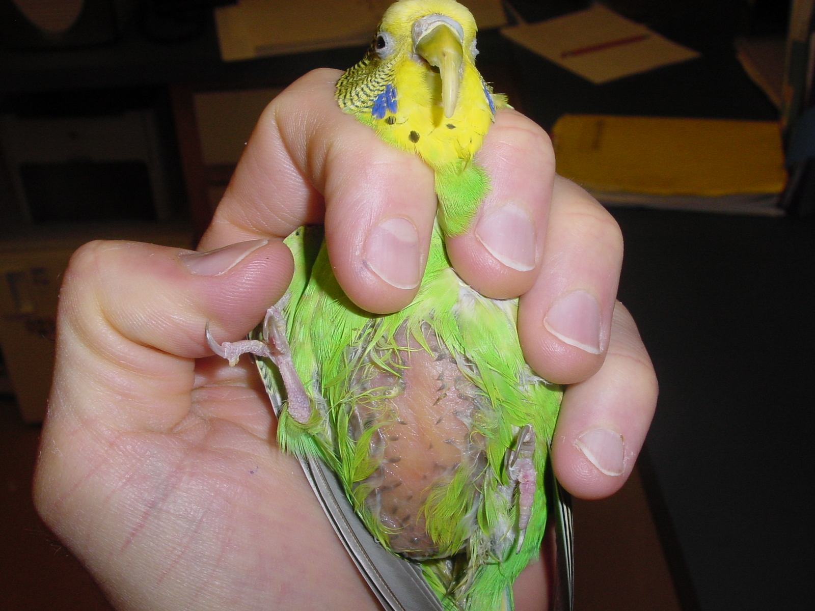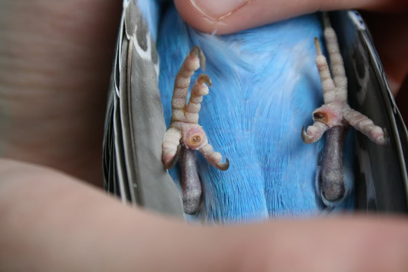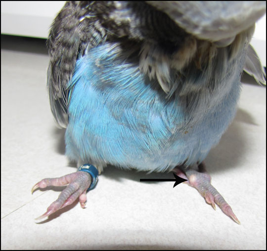 La obesidad se asocia también a problemas dermatologicos en las patas, como los clavos. Los clavos son ulceraciones producidas por un mal apoyo de las patas y un exceso de peso. Típico de periquitos obesos con perchas de plástico.