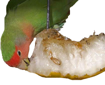 1 cucharada sopera de macedonia de frutas y vegetales con al menos cinco de entre los siguientes: Pimiento rojo, achicoria, apio, diente de león. berro, naranja, manzana, frutos de temporada. (Si vivís en Canarias no descuidéis las guayabas que son uno de sus alimentos nativos) y los higos siempre que os sea posible. Cuatro o cinco granos de maíz dulce fresco o un trocito de mazorca