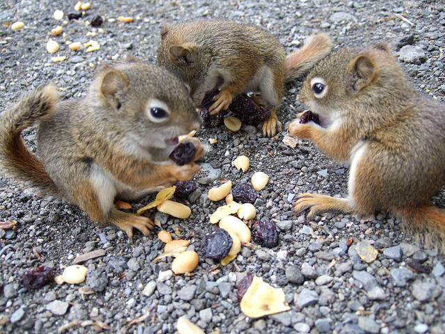 – Carne. Las ardillas ocasionalmente depredan pollitos y pequeños reptiles. Pero eso no quiere decir que por ello haya que darles un trozo de bistec de ternera o una alita de pollo.