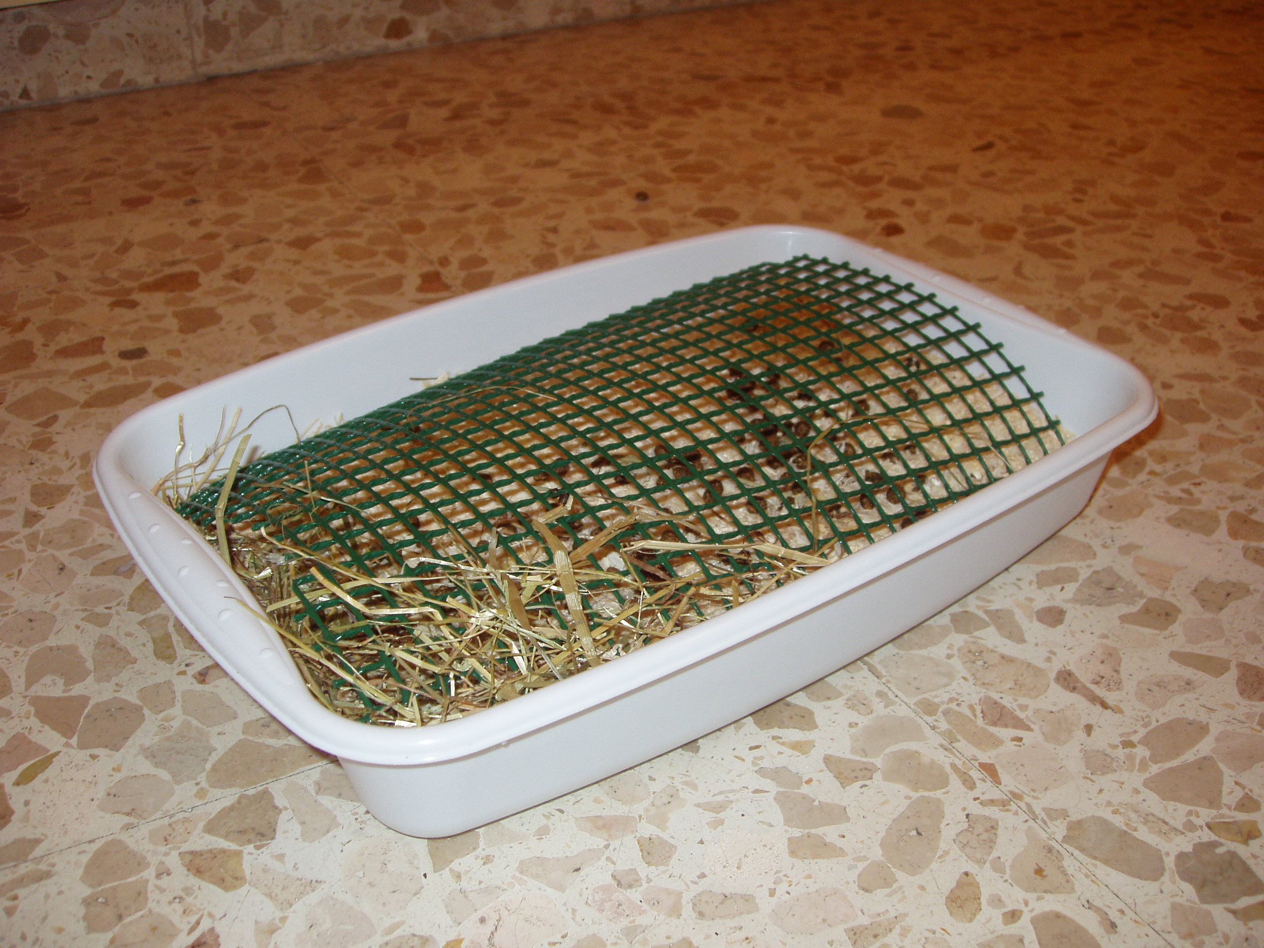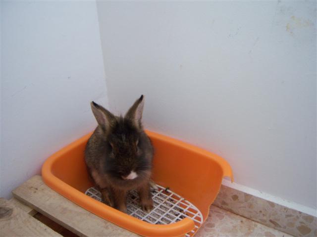 Muchos propietarios de conejos tienen la duda de cómo enseñar a su conejo a usar la bandeja de arena, como si fuese un gato. Es cierto que los conejos aprenden a usarla y esto facilita el dejarlo suelto sin que se defeque por toda la casa. Ellos normalmente seleccionan un rincón de la casa donde hacer sus necesidades. Entonces podemos colocar allá la bandeja para que se habitúen. Los conejos enteros marcarán también su territorio con orina. Es por eso, que los conejos castrados son más fáciles de entrenar.OLYMPUS DIGITAL CAMERA