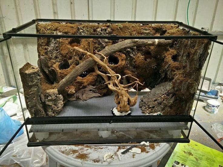 La decoración del terrario va a gusto de su propietario, siendo lo ideal (aunque lo menos decorativo) el papel de periódico, ya que es higiénico, barato y fácil de reponer. Pero si queremos un terrario bonito, podemos usar fibra de coco, corteza o césped artificial (más difícil de limpiar) En ningún caso usaremos tierra, arena o viruta de pino. Debemos poner ramas o troncos para ayudarla en la época de muda, escondites (preferiblemente dos, uno en la zona más caliente y otro en la zona más fría) un recipiente poco profundo con agua para que se bañe y podemos poner algo de vegetación. No es recomendable poner cascadas ni sistemas tubulares de agua (fuentes), es peligroso para ellas.