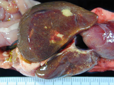 En la necropsia solemos ver unos riñones, hígado y bazo agrandados, zonas circunscritas de necrosis y hemorragias hepáticas, y también es posible la presencia de hemorragias en otros lugares como los intestinos, el páncreas y la cavidad celómica. El diagnostico estará basado en la historia clínica (es importante saber si el animal es de importación, o si ha estado en contacto con aves importadas), los síntomas clínicos, las lesiones y el aislamiento vírico de los tejidos.