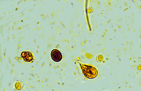 El parásito es capaz de hacer quistes, que son muy resistentes en el medio y pueden durar mucho en el ambiente incluso en condiciones ambientales adversas. Estos quistes son excretados con las heces y pueden contaminar el aviario o la jaula, la comida o el agua. Es por ello que es una enfermedad muy contagiosa, ya que las aves no infectadas solo deben ingerir esos quistes para ser parasitadas.