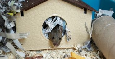 - Intenta mantener la jaula en un lugar no excesivamente iluminado y fuera del alcance de depredadores potenciales. La presencia de perros y gatos puede estresar a los ratones, sólo por el mero hecho de que los huelan.