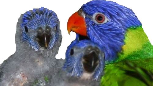 Los loris, al igual que las carolinas demandan la comida con mucho escándalo i siguen pidiendo pese a estar llenos. Los loris crecen y se desarrollan muy rápido, comparativamente con otras aves de su tamaño. Suelen ser en general fáciles de destetar porque enseguida se muestran interesados en la comida. Los loris suelen criarse con fórmulas especiales para los mismos y néctar, facilitando así la transición a la independencia.