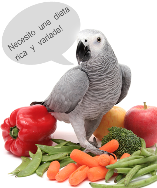 Cada especie de loro necesita su dieta especifica, pero es importante la variedad en la misma. Un loro no se alimenta de semillas o pienso solo, sino de frutas, verduras frescas y otros alimentos que complementan la dieta y ayudan a enriquecer su vida.