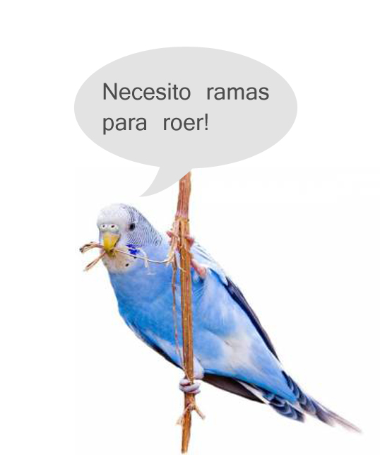 Los loros en la naturaleza roen ramas, ya sea para fortalecer su pico como para conseguir alimento. Hay que proporcionarles ramas frescas no tóxicas que deben ser renovadas tan frecuentemente como sea necesario para que puedan disfrutar de ellas.