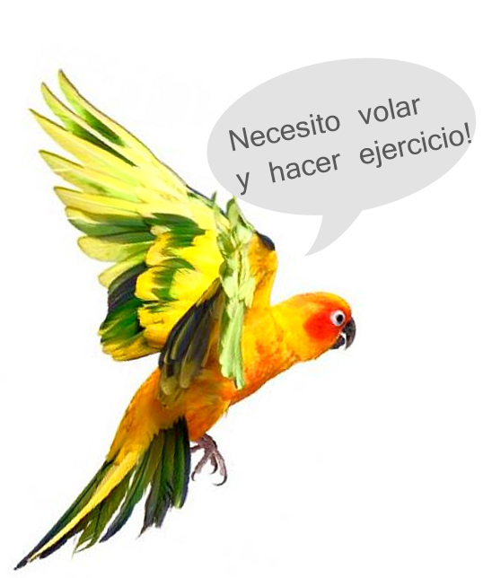 Las aves necesitan ejercitarse y volar, siempre que no tengan las alas recortadas. Para ello se debe disponer de una habitación segura, con las ventanas tapadas y sin presencia de depredadores (perros y gatos)y otros elementos peligrosos para las aves. Si se dispone de un aviario exterior, ya mejor que mejor!
