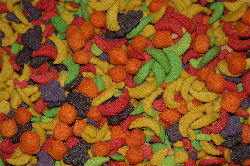 Se ha observado una relación entre los colorantes alimentarios y los aditivos de los piensos extrusionados y el picaje. No entraremos en marcas comerciales, pero aquellas que contienen colorantes artificiales y otros aditivos como el Butilhidroxitolueno (BHT) son las más propensas a producir cuadros de picaje en las aves. Por lo tanto, cuando escojamos un pienso evitaremos ambos componentes para reducir al máximo el riesgo. Sin ir más lejos, hay diversos colorantes alimentarios que están prohibidos en la alimentación humana pero están permitidos en la nutrición animal. Por algo será.